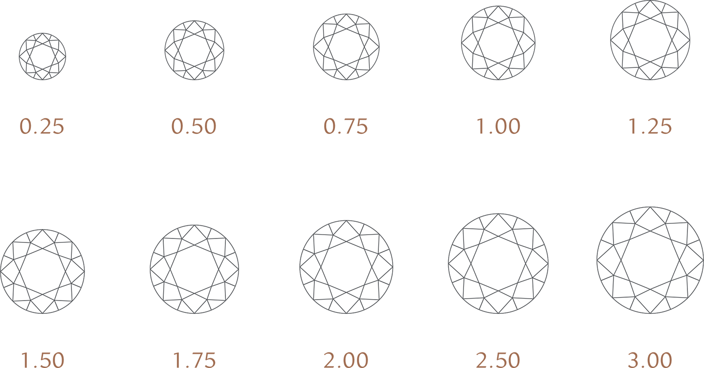 A carat is equivalent to 0.2 grams (or 100 points). Diamonds are priced according to weight categories; the larger the stone, the more expensive, reflecting increasing natural rarity. Weight, however, does not equate to diameter; thus, reinforcing the importance of cut.
