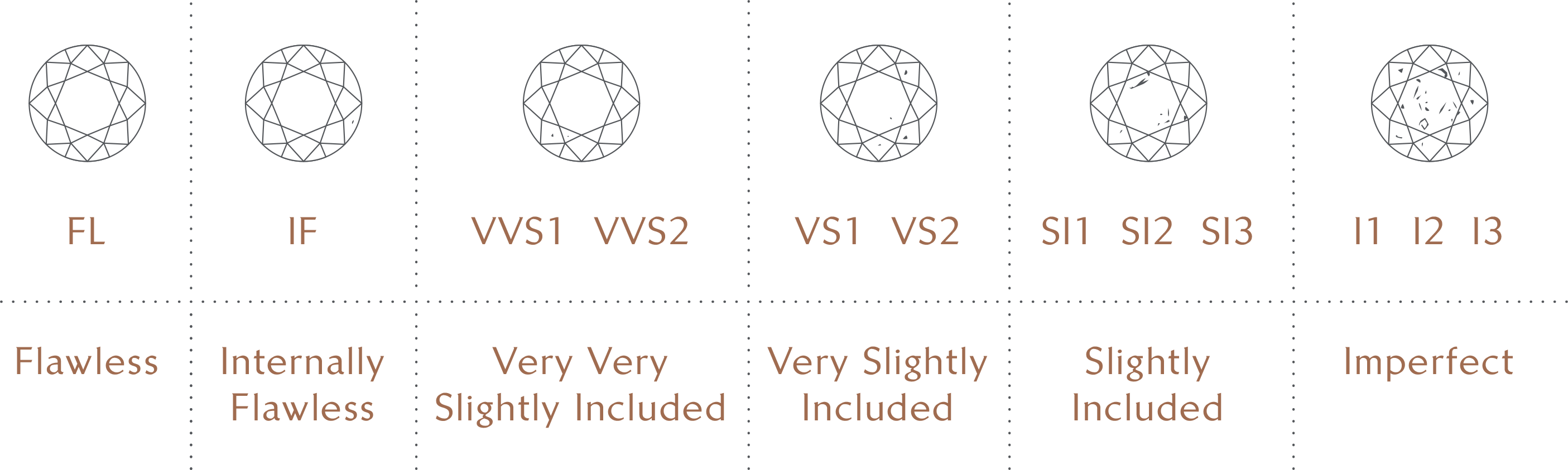 Like humans, diamonds are not perfect – they come with flaws. These flaws influence the clarity grading of a diamond which is determined by the size, location and the number of tiny natural marks, known as inclusions, present in most diamonds. These marks are deemed to be the “fingerprints” of a diamond, making each stone unique with its own set of identifying characteristics. The clarity grade of a diamond is determined under 10x magnification and generally does not affect the beauty of the diamond